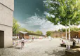Die Dualität zwischen steinernem, multifunktionalem Kulturhof und sehr extensiv gehaltenem, baumüberstandenem Vorplatz Reithalle wird begrüßt. Gemeinsam mit den durch Vordachanbauten geschaffenen Gebäudevorzonen vermag der Kulturhof zur Bespielung einzuladen. Die südliche Vorzone der Reithalle ist gut proportioniert und klar mit einer Kante zur Grünfläche definiert. So entsteht auch hier zum Boulevard eine gut für die Umnutzung der Halle geeignete Vorzone ohne Not, den gesamten südlichen Grundstücksteil zu befestigen.