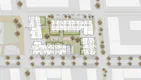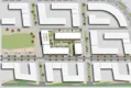 Im Erdgeschoss werden neben den zwei im B-Plan vorgesehenen Zugängen zum Hofbereich zwei weitere Durchgänge vorgesehen. Hier werden Fahrradstellplätze und Müllstandorte als Teil einer dezentralen Verteilung korrekt positioniert. Die Ausformulierung im Durchgang erzeugt allerdings unklare Ecksituationen. Weitere Fahrradstellplätze werden im EG an den Eingängen und großflächig in der Tiefgarage angeordnet. Dieses Prinzip verspricht eine flexible und sinnvolle Nutzung. Der große Müllstandort neben der Tiefgaragenrampe ist sinnvoll und wirtschaftlich. Mittig im westlichen Gebäuderiegel wird eine öffentliche oder gewerbliche Nutzung ermöglicht, die als durchgesteckte Einheit flexibel zu nutzen ist. Sie ist allerdings von Westen wenig prägnant ausformuliert.