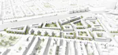 Städtebauliches Leitbild ist eine permeable, robuste Stadttextur, die sich aus der an-grenzenden gründerzeitlichen Stadtstruktur ableitet, diese und Ihre Typologie der Block-randbebauung aber fortführt und neu interpretiert: Der traditionelle Straßenraum der „rue corridor“ wird zu einer fließenden Stadtlandschaft transformiert.