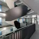 Die Einschnitte schaffen eine interessante Raumfolge im Inneren und bringen Tageslicht ins Innere, insbesondere in den zentralen Bereich, in dem sich die Haupterschließung, Besprechungsräume und Aufenthaltsräume mit Teeküche (Meetingpoints) befinden. Die Dreibundstruktur sorgt für eine interessante Raumabfolge im Inneren und schafft die Voraussetzung für ein Arbeitsumfeld mit hoher Aufenthaltsqualität. Flure, Besprechungsräume und Aufenthaltsbereiche erhalten Tageslicht und haben einen Ausblick nach Außen (Außenraumbezug). Als Räume mit hoher Aufenthaltsqualität dienen sie für informelle Gespräche und Kommunikation unter Mitarbeitern. Nicht zuletzt ist die Eingangshalle im Erdgeschoss ein repräsentatives Entrée für das Gebäude und schafft eine starke Identifikation mit der neuen Arbeitsstätte.