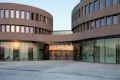 Der teilunterkellerte Neubau setzt sich aus verschiedenen Baukörpern mit unterschiedlichen Geschosszahlen zusammen. Alle Nutzungsbereiche sind im Erdgeschoss sowie im 1. Obergeschoss miteinander verbunden.