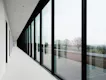 Die zur Verwendung kommenden Fassadenmaterialien - Glas und dunkel eingefärbte Sichtbetonfertigteile - unterstreichen das Objekthafte der Gebäudeentwürfe. Die Plastizität ergibt sich aus den tief in den Fassaden angeordneten Fensterelementen sowie der durchscheinenden Gebäudestruktur.