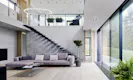 Im Inneren besticht das Haus durch offene Räume: Das Wohnzimmer ist zum Obergeschoss hin offen. Über eine Galerie werden Schlaf-und Arbeitszonen sowie Bäder...