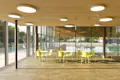 Im Vordergrund der Planung für das kommunale Schwimmbad stand, ein gestalterisch überzeugendes und qualitativ hochwertiges Gebäude mit langer Lebensdauer zu errichten. So wurde der Neubau unter dem Blickwinkel der Nachhaltigkeitskriterien im staatlich geförderten kommunalen Hochbau (Förderprogramm NBBW) genau unter die Lupe genommen. Der kompakte Baukörper mutet von außen schlicht an, im Innenraum herrscht eine leuchtend helle Atmosphäre, die mit maximaler Aufenthaltsqualität überzeugt.
