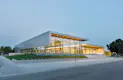 Das kommunale Hallenbad liegt zwischen dem Schul- und Sportzentrum und dem neuen Festplatz am Ortsrand von Stutensee. Aufgrund des hohen Grundwasserspiegels wurde der Neubau zwei Meter über Geländeniveau realisiert. Diese erhöhte Lage verleiht dem Baukörper im Außenraum eine gesteigerte Präsenz und sorgt im Innenraum für mehr Privatheit und damit eine höhere Aufenthaltsqualität im Bad. Architektonisch gliedert sich das Stutenseebad in zwei Raumvolumen, die sich sichtbar von außen abzeichnen. Die geräumige Badehalle umfasst ein Schwimmerbecken, ein Lehrschwimmbecken mit Rutschbahn sowie einen Kleinkindbereich mit insgesamt 368 m² Wasserfläche. Eine überdachte Terrasse nach Osten erweitert das Angebot im Außenbereich. Der nach Süden angrenzende Eingangs- und Umkleidebereich mit Dusch- und Nebenräumen setzt sich durch eine reduzierte Raumhöhe von der Badehalle ab. Dabei greifen die zwei Baukörper in Form und Materialität ineinander und verzahnen sich von außen durch ein umlaufendes Band der Stahlblechfassade.