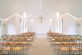 Die Aussegnungshalle ist ein gelungenes Beispiel für einen respektvollen Umgang mit dem Gebäude-bestand und mit den Menschen, die einen starken Bezug zur alten Kapelle hatten. Teile des Altbaus, wie die Fenster oder die Eingangstür, wurden im Umbau und in der Erweiterung fortgeführt oder gar integriert. Trotz der erhaltenen Elemente eröffnet sich den Gästen durch den Rückbau der alten Decke und den damit geöffneten Dachstuhl ein vollkommen neues und einladendes Raumgefühl. Details wie das Absetzen des Dachs von der Wand mittels einer Lichtfuge verleihen dem Gebäude ein modernes und zeitgemäßes Antlitz.